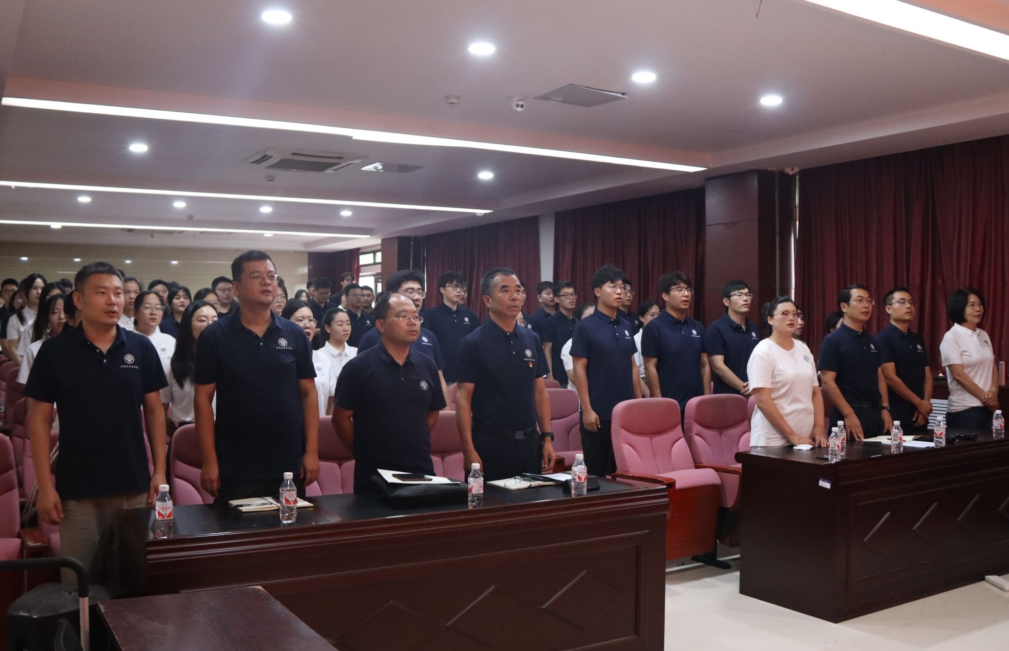 全体师生庄严肃立,齐唱《国歌》,开学典礼拉开帷幕。
