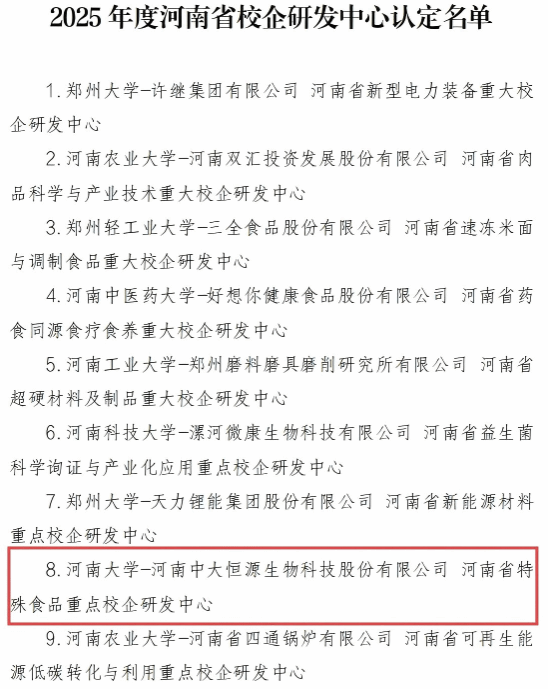 近日,省教育厅、省财政厅、省科学技术厅、省工业和信息化厅联合发布《关于公布2025年度河南省校企研发中心认定名单的通知》,我校“河南省特殊食品重点校企研发中心”获得省重点校企研发中心认定,本次共认定研发中心9个。
