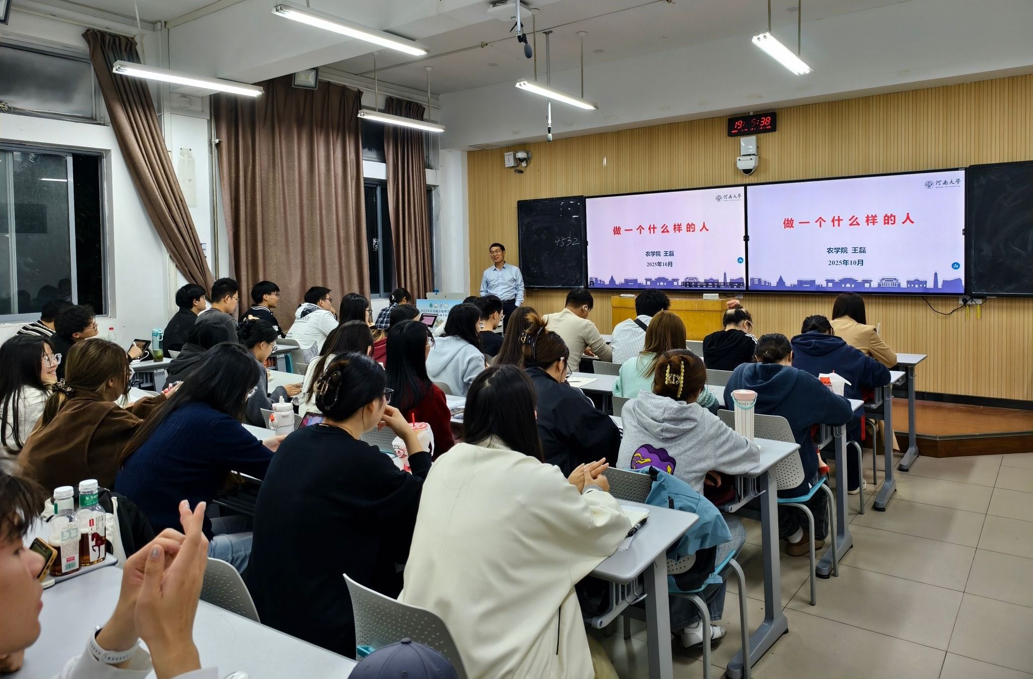 10月14日晚,学院党委书记王磊为2025级研究生新生作了题为《做一名什么样的人》的主题报告,引导新生在学术启程之初找准人生定位、涵养优良品格。